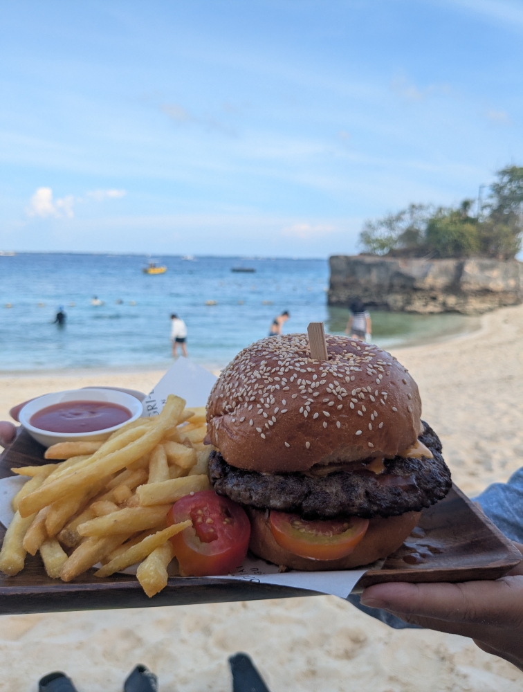 ビーチサイドで食べたハンバーガーはびっくりするほど大きくてとっても美味しかったです。