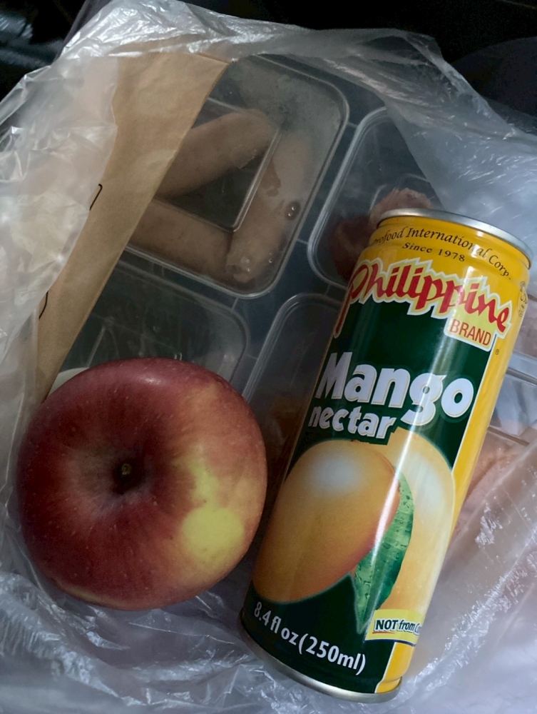 ジンベイザメのツアーの日に朝早いので、朝食を食べられない事を伝えると、パンなどを詰め込んだ簡単なお弁当とリンゴとジュースを準備してくれました。