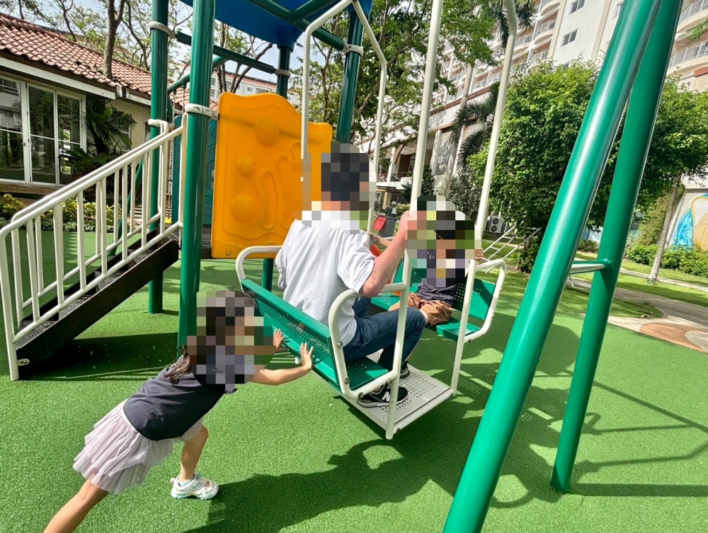 目の前の道路を渡ればスーパーがあるので、お水やちょっとしたお土産など買うのに便利でした。プールは子どもたち大喜びでとっても楽しく遊んでいました。バスタオルや浮き輪、ライフジャケットはレンタルができました。ウォータースライダーも何度もやりました。またホテルにコイ...