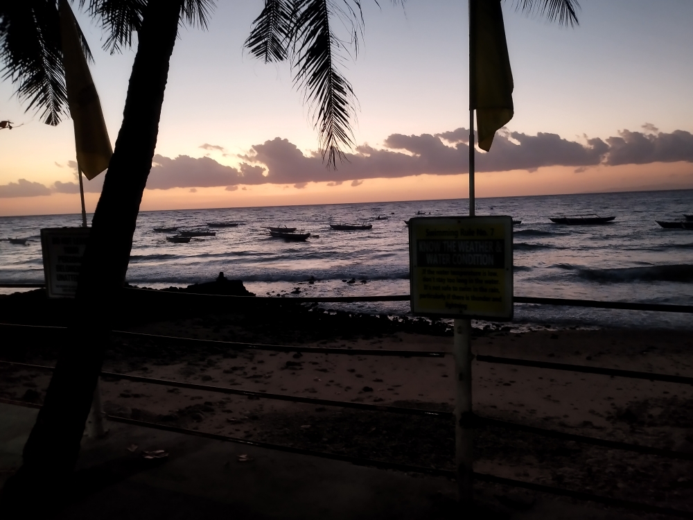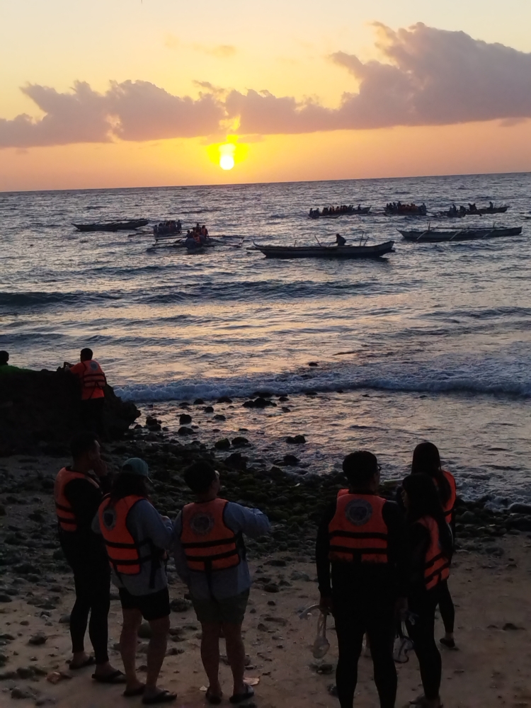 ジンベイザメと泳ぐ順番を待っている間に