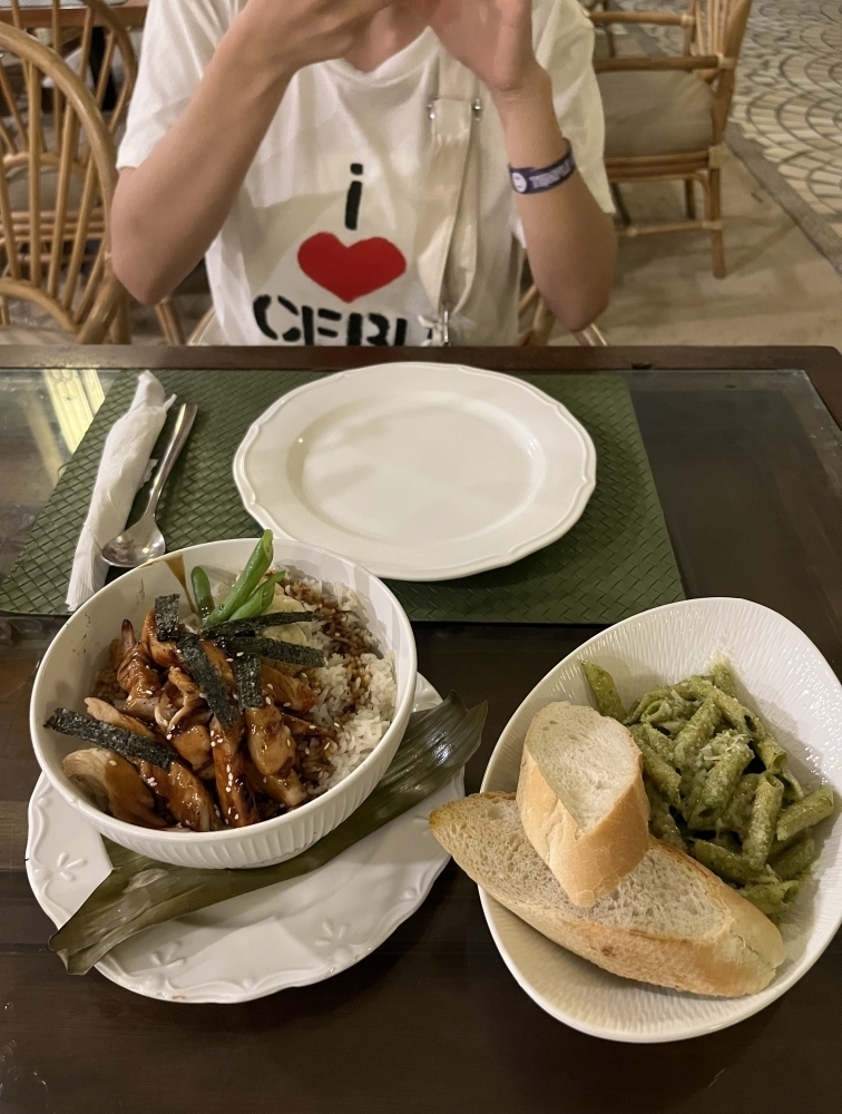 [食事]2日目の朝食は朝早くに出発するためランチボックスにしていただきました。出発時間が朝2:00だったにも関わらず、時間までに朝食を用意していただけました。サンドイッチ、フルーツ、飲み物がついていてお腹いっぱい食べることができました。特にサンドイッチがボリューミーで作ってから時間が経っていたにも関わらずとてもおいしかったです。3日目の朝食はバイキングをいただきました。飲み物から食事、デザートまで種類豊富でお腹いっぱい食べることができました。3日目の夕食もホテルでいただきました。ペンネとてりやき丼を注文して友達とシェアして食べました。どちらもボリューミーでお腹いっぱいになりました。とてもおいしかったです。また夕食時には演奏家の方々が演奏していてとてもたのしく食事を楽しむことができました。